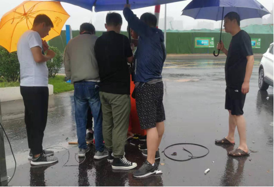 ? ? ? ? 此時“利奇馬”臺風已經(jīng)開始影響濟南,而停車場的信息化工程,需要強電、弱電、手機信號優(yōu)化等一系列施工改造,以及視頻設備安裝為了確保出入口附近地面溝槽的安全,工作人員專門找來5把太陽傘遮擋雨水。然而大風襲來,太陽傘瞬間被撕裂……